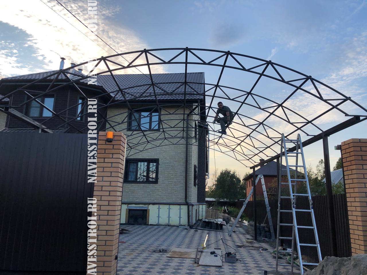 За день на даче изготовили арочный навес 5 на 7 с покрытием поликарбоната. Привезли уже готовые крашенные фермы и весь остальной материал. Все за собой убрали и увезли мусор. Молодцы!